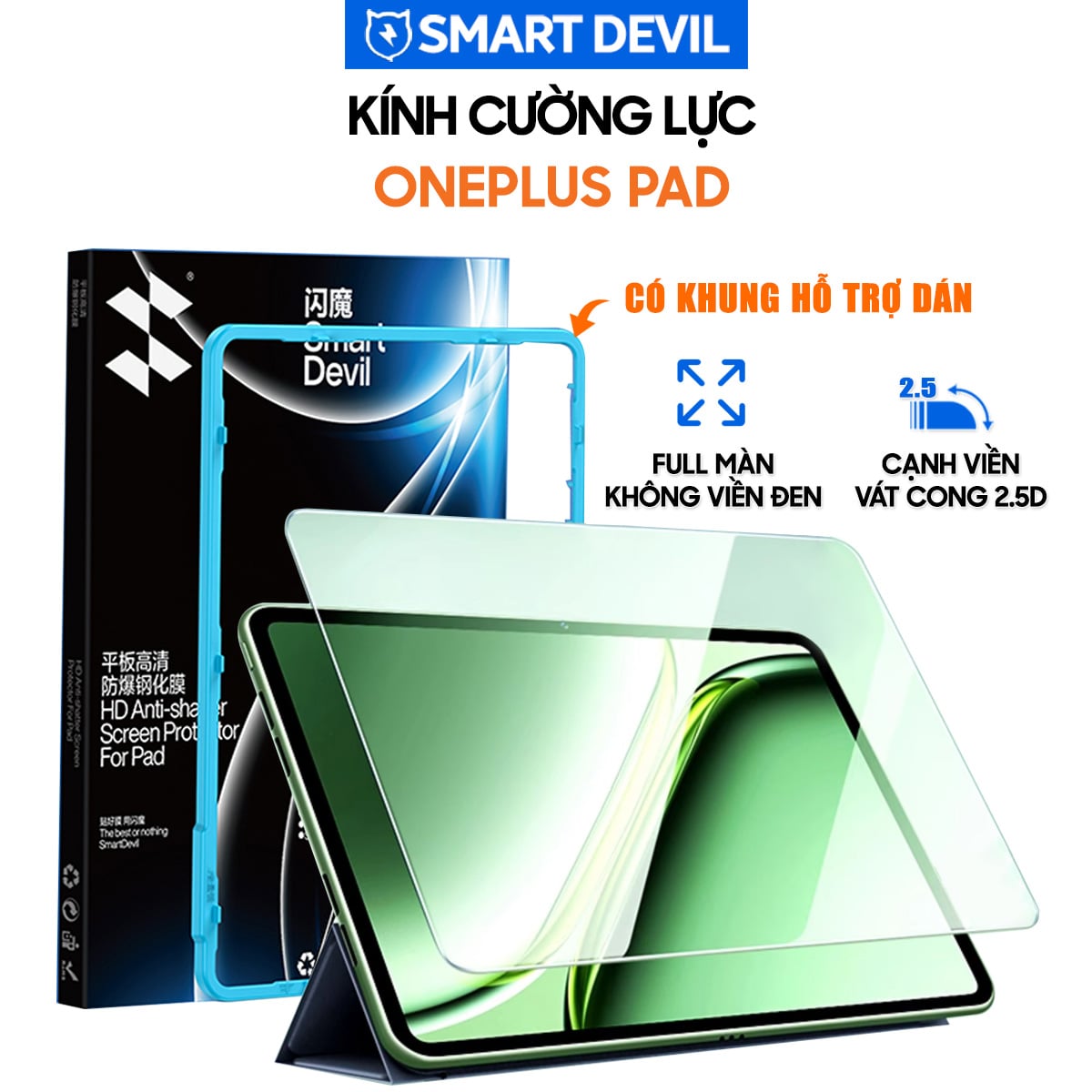 Kính cường lực Oneplus Pad full màn hình chính hãng Smart Devil có khung hỗ trợ dán – Dán màn hình Oneplus Pad