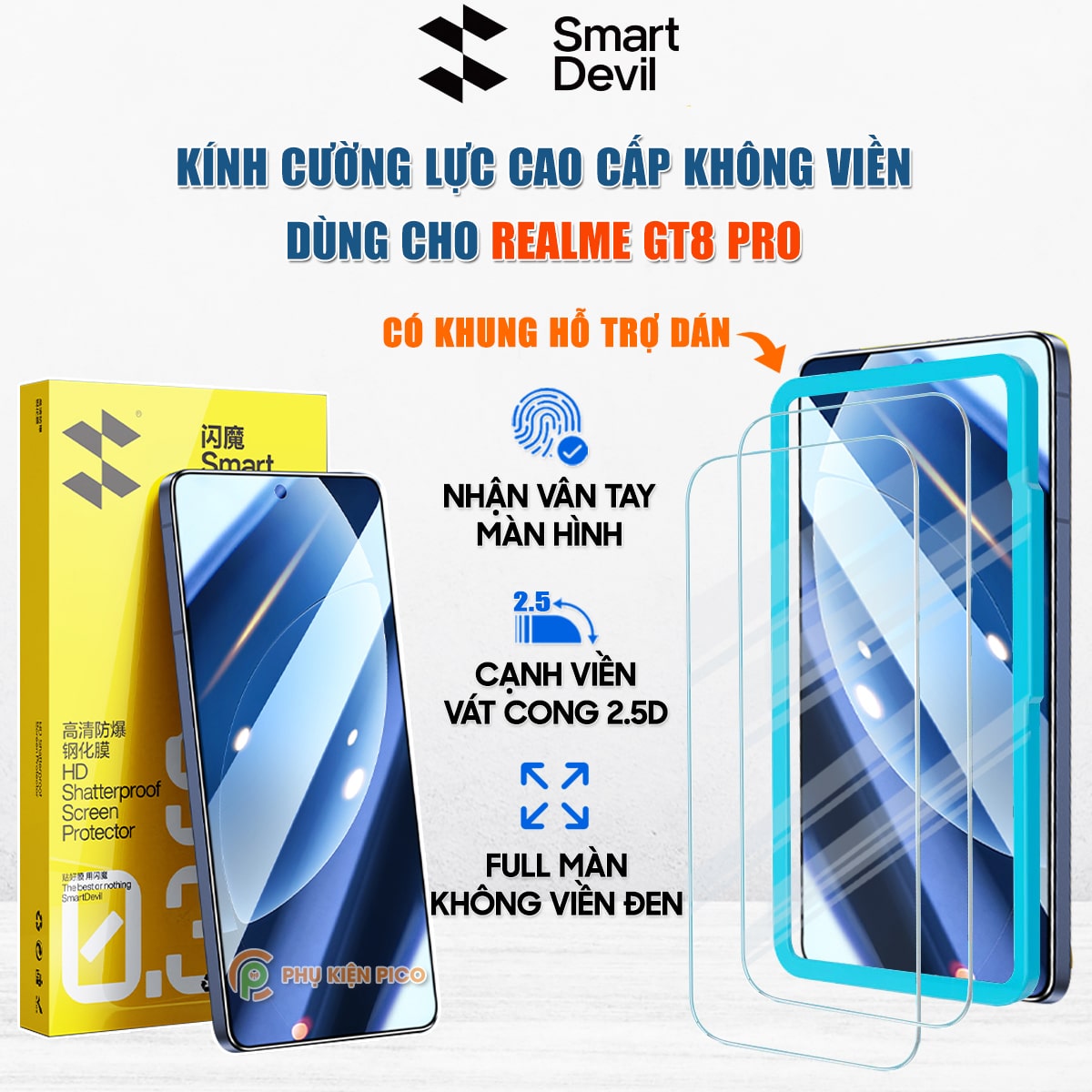 Kính cường lực Realme GT8 Pro trong suốt full màn hình chính hãng Smart Devil có khung hỗ trợ dán