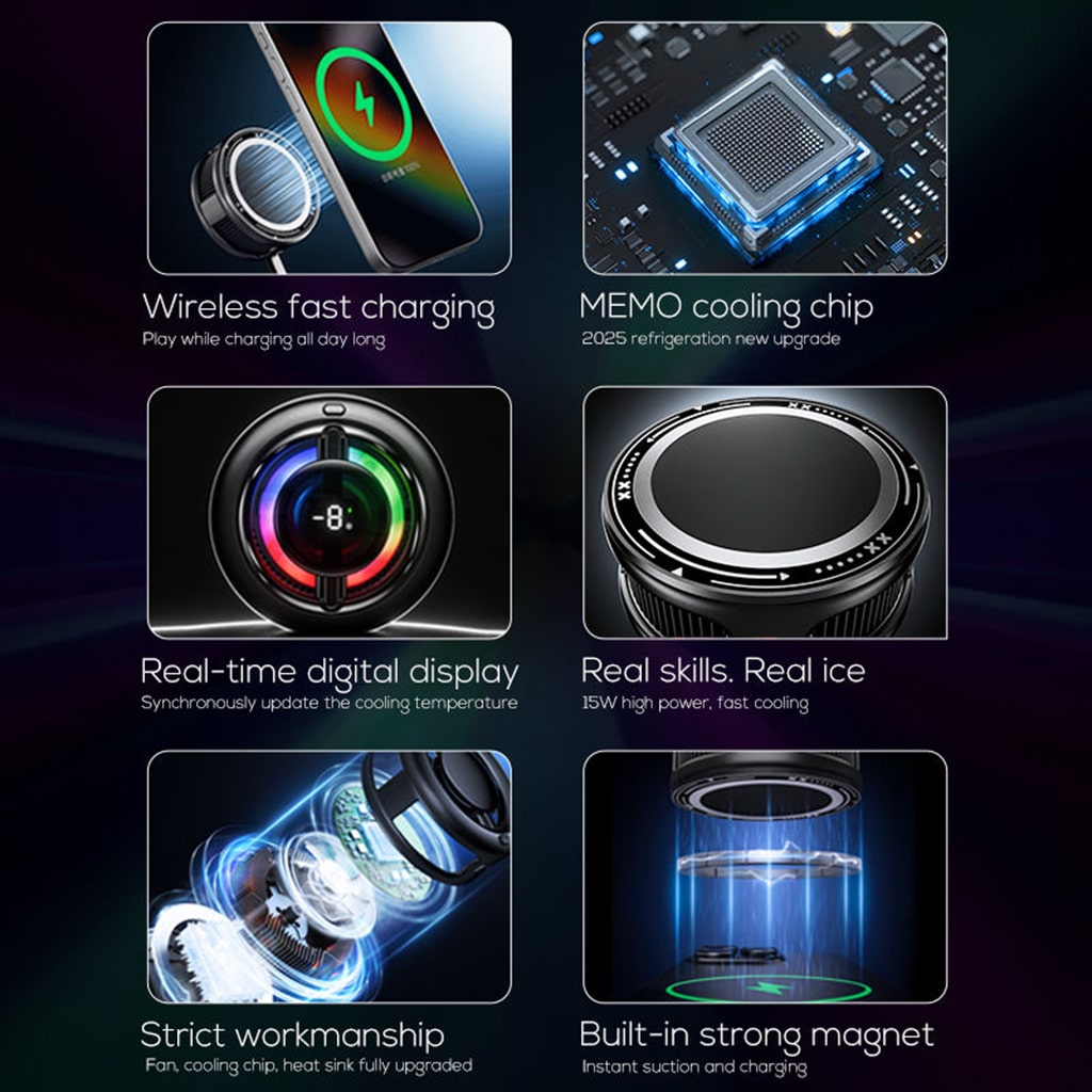 Quạt tản nhiệt điện thoại sò lạnh Memo CX19 có sạc không dây màn hình hiển thị nhiệt độ đèn Led Gaming thế hệ mới