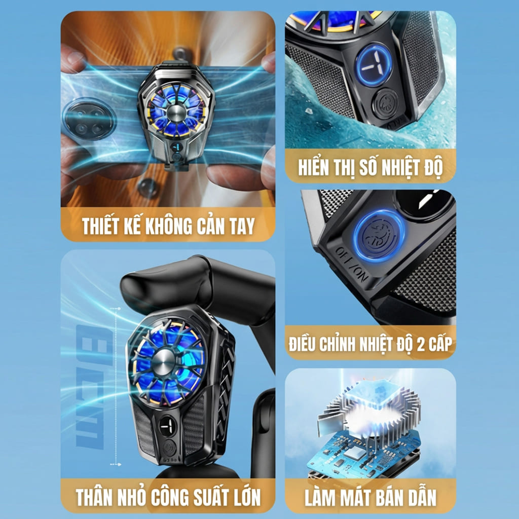 • Sò lạnh kéo dài tuổi thọ điện thoại, giữ mát cho máy chống giật lag do giảm FPS khi chơi game, livetream.